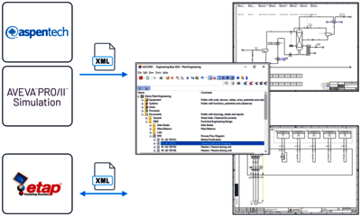Für unterschiedliche Simulationstools wie Aspen Plus bietet Engineering Base fertige Import/Export-Lösungen. Auch firmeneigene Simulationswerkzeuge lassen sich einfach integrieren. Unabhängig von der Ausgabeform der Ergebnisse ermöglicht eine Transformation in EBML den nahtlosen Import. So können Stoff- und Materialflüsse, Behälterkapazitäten und andere typische Größen eines Produktionsprozesses effektiv simuliert werden, was die Prozessplanung erheblich vereinfacht.